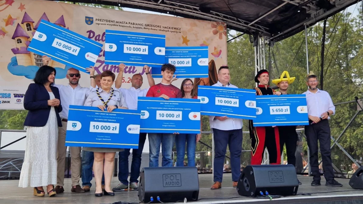 W ostatnią sobotę (31 maja), podczas Pabianickich Obchodów Dnia Dziecka, prezydent Grzegorz Mackiewicz przekazał symboliczne czeki na małe granty dla pierwszych organizacji pozarządowych, których zgłoszone pomysły przeszły pomyślnie ocenę formalną i merytoryczną.Dotacje w łącznej wysokości 65 650 zł zostały przyznane: