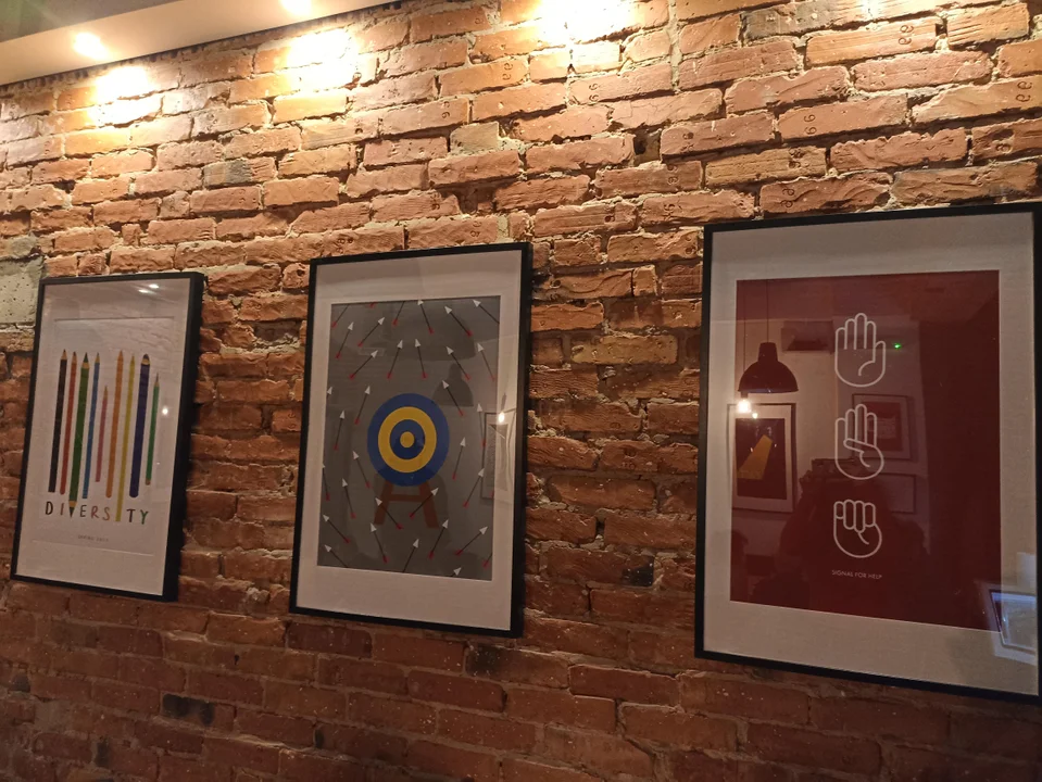Wernisaż odbył się 6 kwietnia w restauracji Loft 74. Kameralna ekspozycja obejmuje kilkanaście prac zrealizowanych w większości w roku szkolnym 2021/2022 między innymi na zajęciach projektowania graficznego pod kierunkiem pana Marcina Grabia. Na wystawie można również oglądać projekt dotyczący opracowania formy graficznej "przeciw przemocy", zrealizowany pod opieką pana Krzysztofa Nowaka i Marcina Grabia.